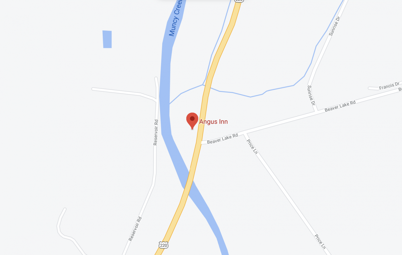 The Angus Inn is sandwiched right between Muncy Creek and the I-20 on the north side of Hughsville, PA.